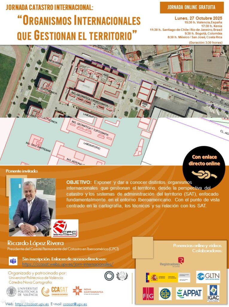 JORNADA CATASTRO INTERNACIONAL: Lunes, 27 de Octubre de 2025; 15:30 hora de Valencia, España